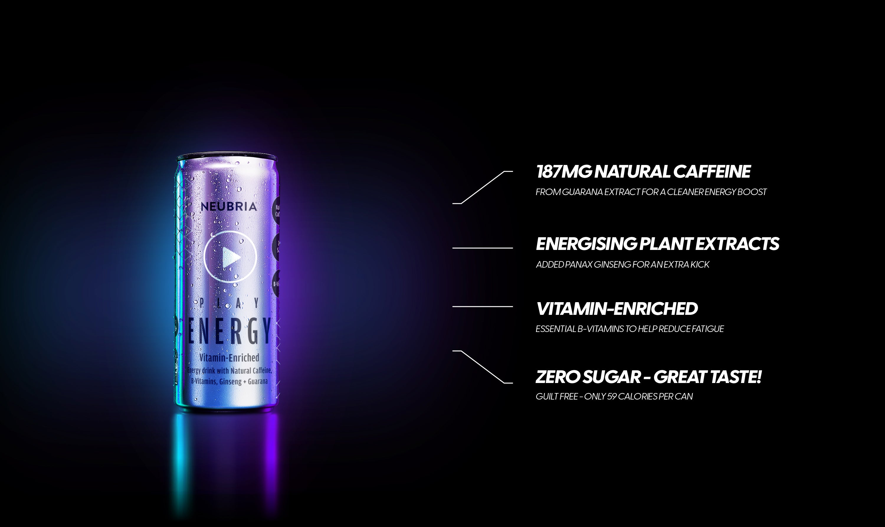 Play is a vibrant, tropical-flavored sparkling drink formulated with a blend of vitamins and plant-based extracts. Each can delivers 187mg of natural caffeine which is 100% sourced from Guarana extract for a smooth, sustained energy boost. Infused with ginseng, and enriched with essential B vitamins, Play provides the extra edge you need to power through your day.